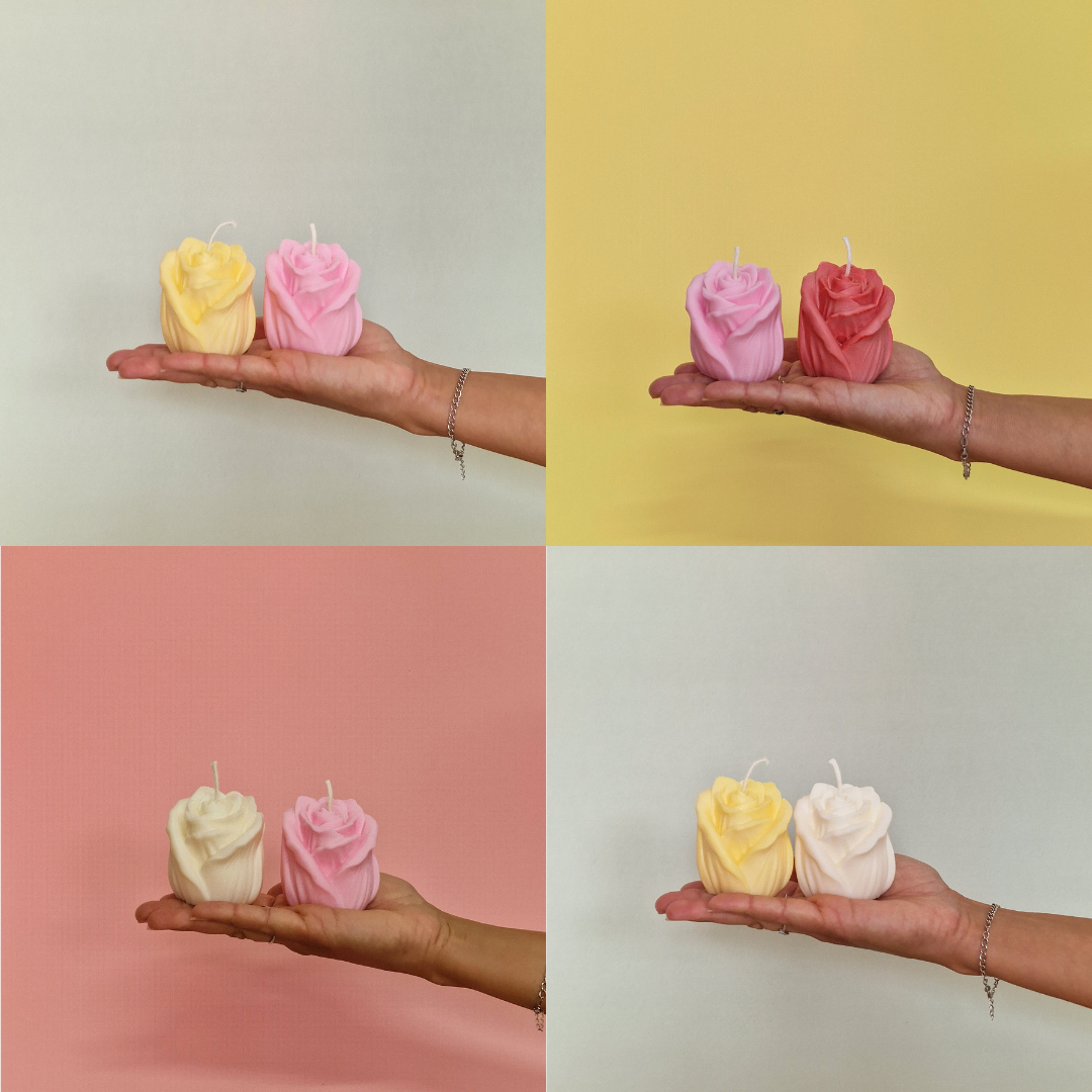 Un set de velas artesanales en forma de rosa grande, elaboradas con 100% cera de soja. Aroma constante, luz limpia y diseño que eleva tu hogar.