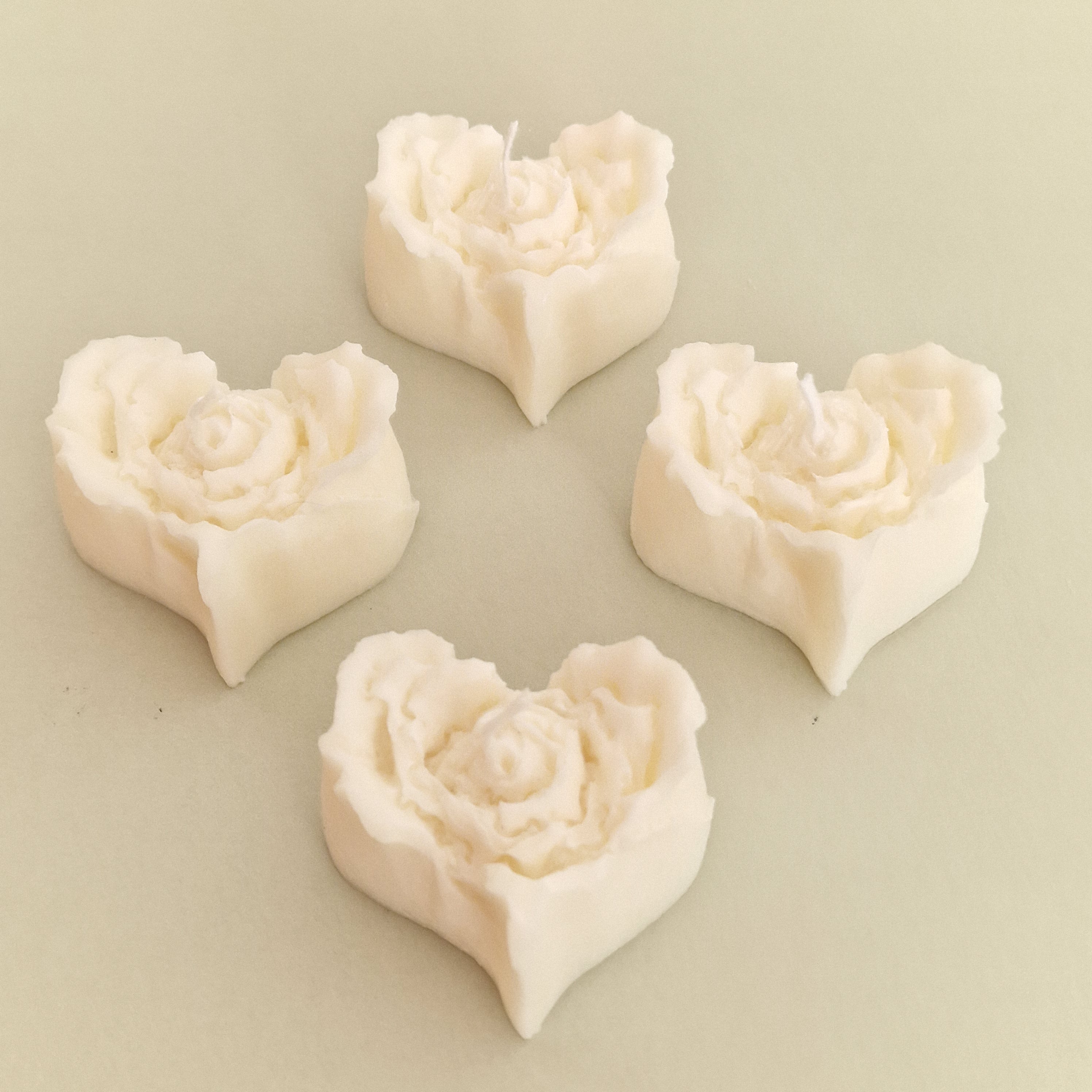 Un set de velas artesanales con forma de corazón y pétalos de rosa. Disponibles en cuatro colores (rojo, rosa, amarillo y blanco), puedes combinarlas como quieras para crear tu propio mix & match. Románticas, delicadas y perfectas para regalar o decorar.